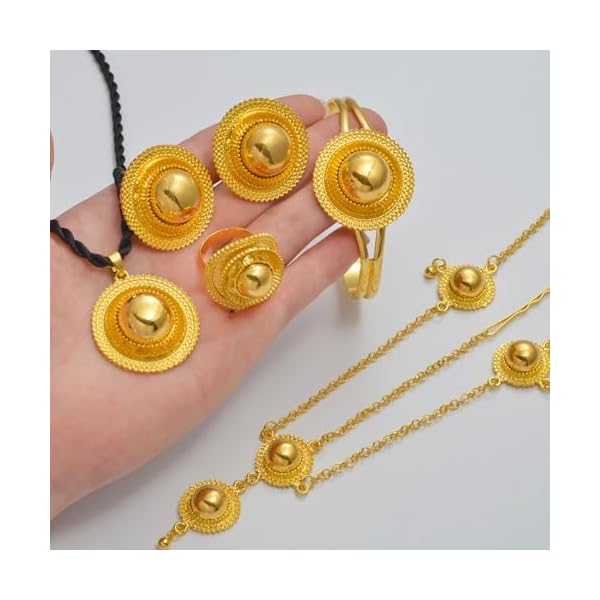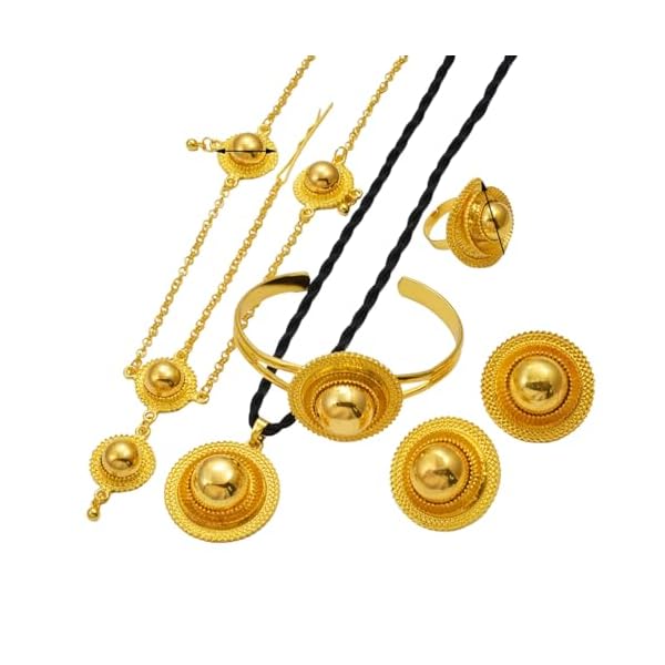 Ethiopian Jewelry for Women Set Ethiopian Jewelry sets Round Necklace Earrings Bracelet Ring Head-Chain Eritrean Traditional Wedding Ethiopian Traditional Jewelry