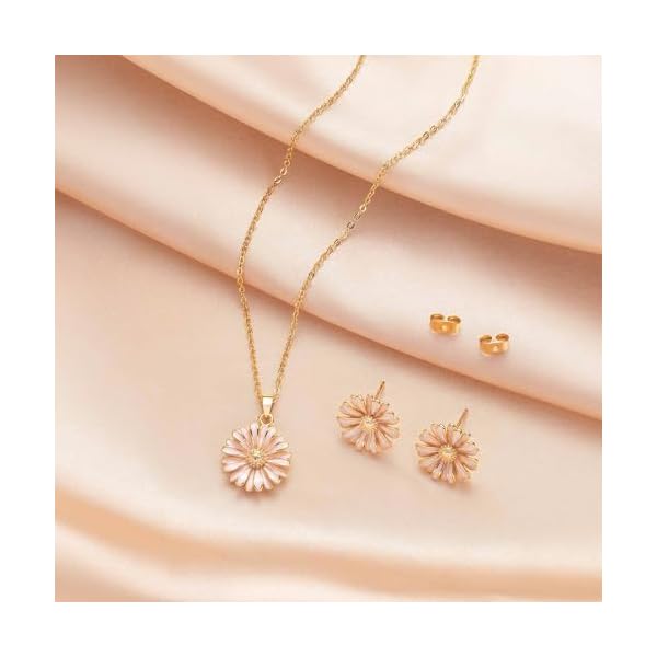 EVEVIC Daisy Flower Necklace Earrings Set for Women 18K Gold Plated Hypoallergenic Jewelry Sets