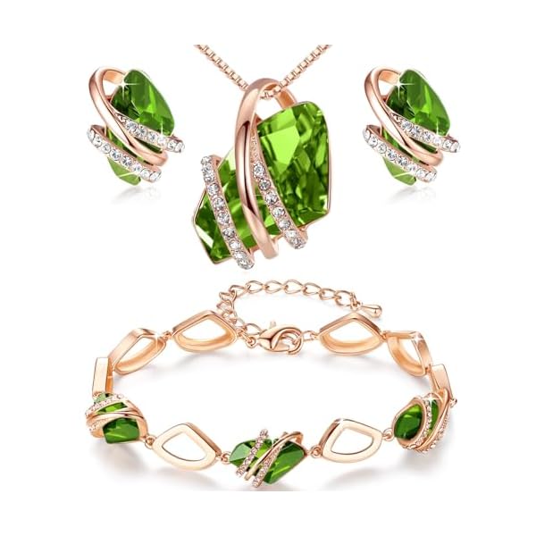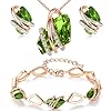 Leafael Wish Stone Necklace, Stud Earrings, and Bracelet Jewelry Set for Women, August Birthstone Peridot Green Crystal Jewelry, Silver Tone Gifts for Women