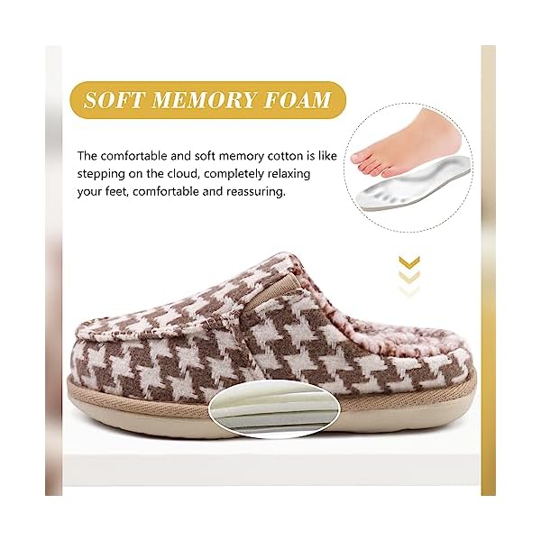 ONCAI Women’s Slippers Plush Woolen Fabric Houndstooth Cotton-Blend High-Density Memory Foam Fluff Clog Plaid Comfort Faux Fur House Slippers Slip on Indoor Outdoor Yoga Mat Rubber Sole US Size 5-11