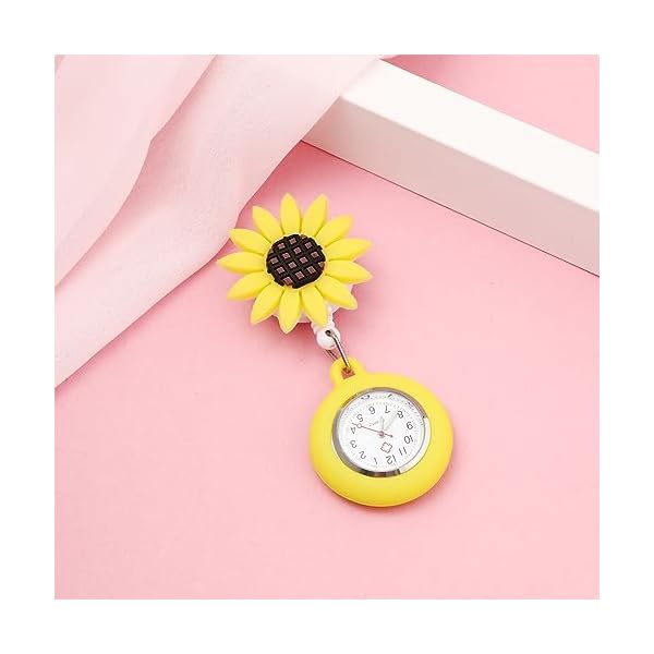Retractable Nurse Watch Cute Sunflower Nurse Lapel Watch Clip On Nursing Watch Nurse Fob Watch for Nurses Doctors Students Women Men