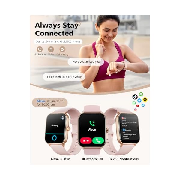 Smart Watch for Women, Alexa, Bluetooth Call, Receive Text, 1.8 Inches Smartwatch Heart Rate Sleep Monitor for Android iOS Phones, 5ATM Waterproof Fitness Tracker Watch, Reloj Inteligente para Mujer