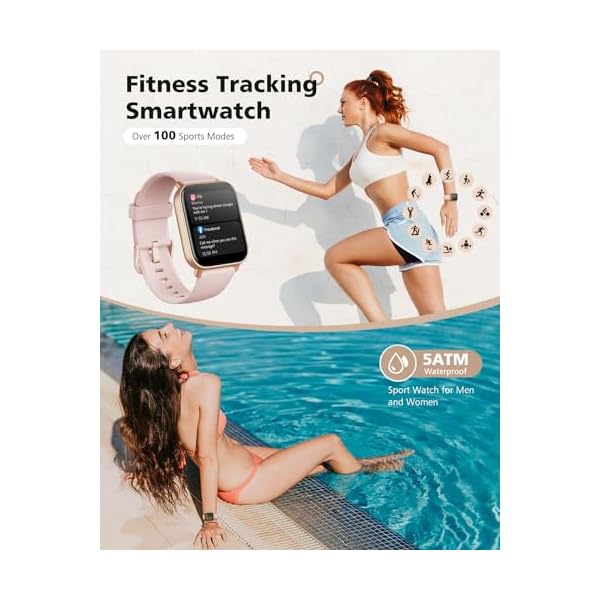 🏃【5ATM Waterproof Sports Tracker】Fitness tracker smart watch With 5ATM water resistance, activity trackers meet most sports enthusiasts needs, anti-sweat, anti-rain, so don’t worry about when you washing your hands or even swimming or surfing. Supports over 100 sports modes tracking, such as running, rock climbing, cycling, and so on. Smartwatch provides fitness data, making sure sweating more meaningful.