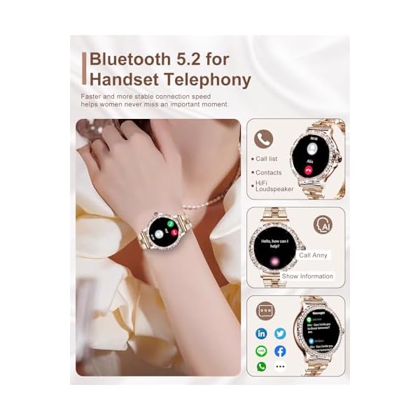 Stylish Design Smart Watches for Women – The ladies round smart watch has a 1.3-inch high-definition full-touch color screen, providing you with a better visual and operating experience. The bezel is embellished with 60 brilliant diamonds, adding to your elegant charm with every gesture