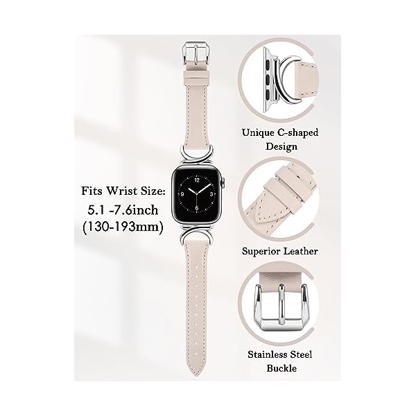 Minyee Leather Band Compatible with Apple Watch Bands 41mm 40mm 38mm 44mm 45mm 42mm 49mm Women, Slim Thin Dressy Designer Strap with C-Shape Metal Buckle for iWatch Ultra 2, Series 9/8/7/6/5/4/3/2/1/SE