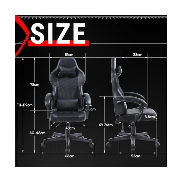 [High Quality Guarantee] According to market feedback, we purposely upgraded the T-back bar to steel plate, adding 100 lbs of shock load and the gaming desk chair also adopts a heavy-duty base. Whether teens or adults can use our chairs with confidence.