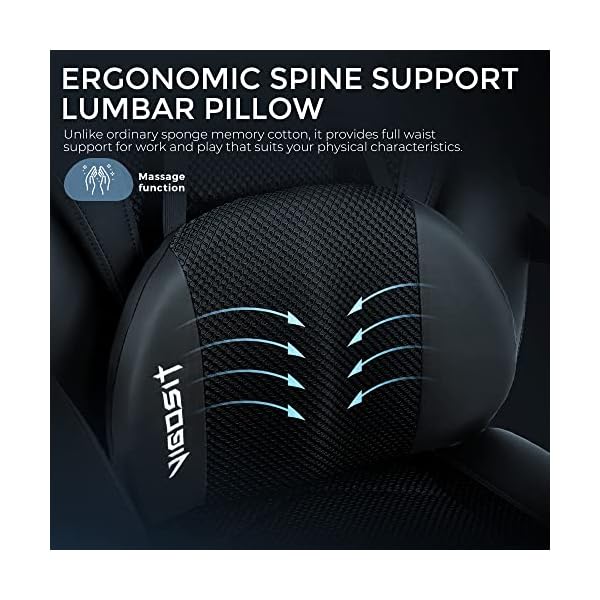 [More Ergonomic Gaming Chair Sets] The headrest is made of high-quality cotton wool, which is softer than ordinary sponges and has better support; The unique shape design can support your head by wrapping it with multiple fulcrums. Ergonomically designed memory foam massage lumbar and travel headrests support your spine and neck to the greatest extent possible to reduce fatigue. Different from the ordinary sponges, memory foam material can meet the needs of people of different body types.
