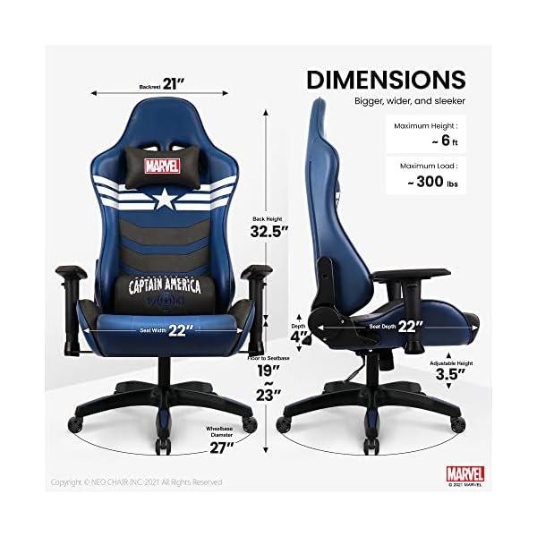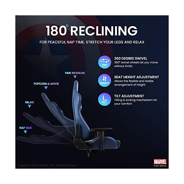 Marvel Avengers Gaming Chair Desk Office Computer Racing Chairs – Adults Gamer Ergonomic Game Reclining High Back Support Racer Leather (Captain America)