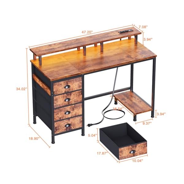 [Desk with 4 Fabric Drawers]: 4 large fabric drawers provide plenty of storage space, perfect for storing documents, office and study supplies, or gaming equipment to keep your desktop in order, maximum space as well as keeping your desktop tidy; the drawers can be installed on the left or right side according to your needs, good choice for your bedroom, study and office.