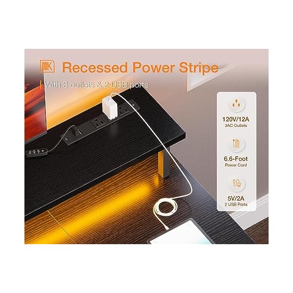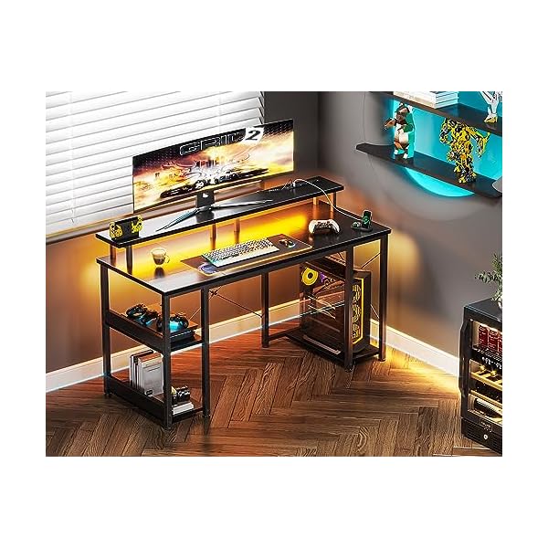 Gaming Enviroment: Our desk features a full monitor stand accommodate two monitors or laptops, built-in LED lighting create strong gaming ambiance.