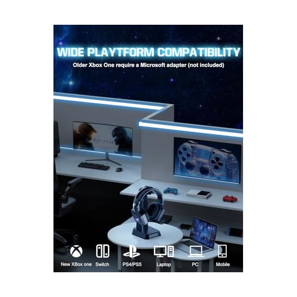 【Multi-Platform Compatibility】This gaming headset with mic is compatible with multiple game devices, such as PS4, PS5, PC, Xbox (adapter required), Xbox S/X, iOS, Android device. Note that it does not work with Xbox 360 and PS3; older Xbox require a Microsoft adapter (not included).