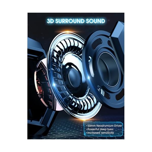 【Immersive Gaming Experience】The gaming headset features premium 50mm, neodymium-magnet drivers. It provides high-quality simulated surround sound, such as gunshots, enemy footsteps, and more, to enhance the immersive gaming experience. You can more accurately distinguish the source direction of the sound.