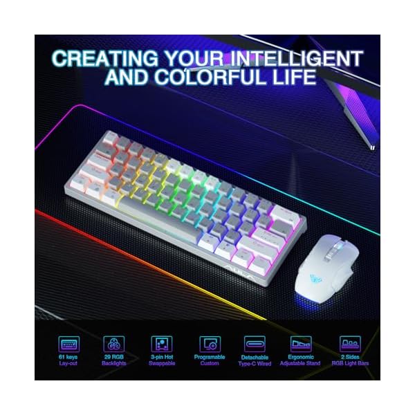 🎺 Excellent Quality White Keyboard —— Aula gaming keyboard provides a long service life that lasts for 70 million presses and the advanced anti-glitch technology of this mechanical gaming keyboard allows to be pressed multiple keys at the same time without conflict. Meanwhile,the superb ABS material of this gaming keyboard 60 percent is never fade and the transparent material of the keycap characters allow the colorful rgb backlight through, makes a cooling stylish appearance.