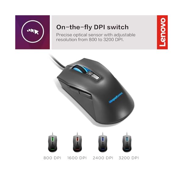 Optimized Gaming Precision: The IdeaPad M100 Gaming Mouse features a precise optical sensor with adjustable resolution ranging from 800 to 3200 DPI. Gamers can fine-tune the sensitivity to match their gaming style, ensuring accurate tracking and precise cursor movements