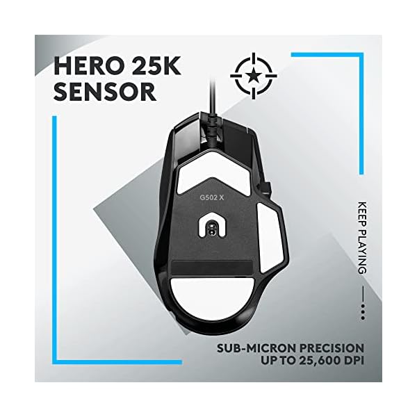 HERO 25K gaming sensor: Incredibly precise down to the sub-micron for high-precision accuracy with zero smoothing/filtering/acceleration for high gaming performance every time on the computer