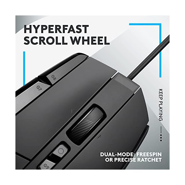 Redesigned hyperfast scroll wheel: Switch between hyper-fast free spin and precise ratcheting mode, and tilt left and right for two additional personalizable controls