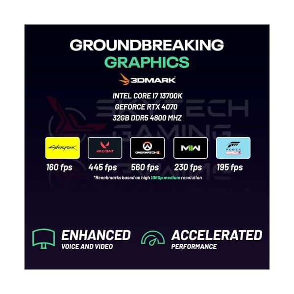 The Skytech Chronos offers the best gaming computer built up to date to quickly run popular games such as Call of Duty Warzone, Fortnite, Escape from Tarkov, Grand Theft Auto V, Valorant, World of Warcraft, League of Legends, Apex Legends, Roblox, PLAYERUNKNOWN’s Battlegrounds, Overwatch 2, Counter-Strike 2, Battlefield V, New World, Minecraft, Elden Ring, Rocket League, Baldur’s Gate 3, Dota 2, HELLDIVERS 2, Monster Hunter, Palworld, Terraria, Rainbow Six Siege, Dragon’s Dogma 2, and more at Ultra settings, detailed 4K Ultra HD resolution, and smooth 60+ FPS gameplay.