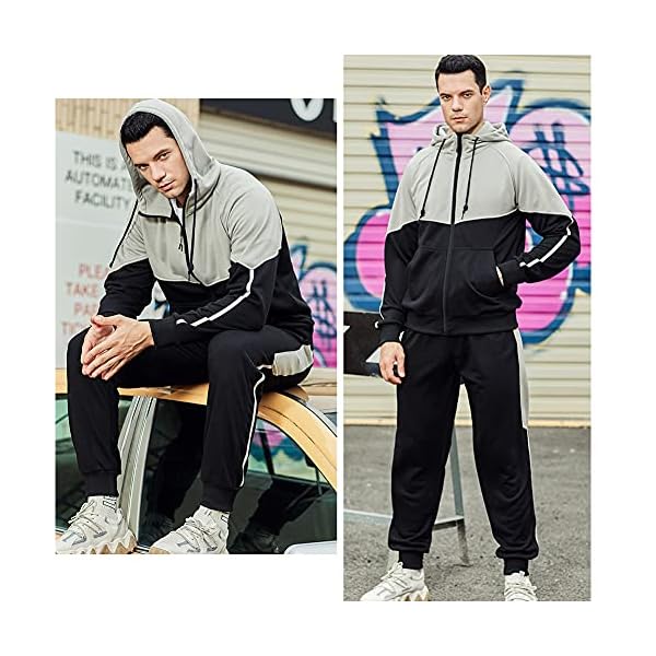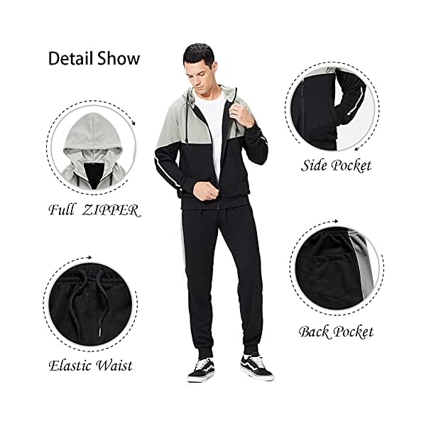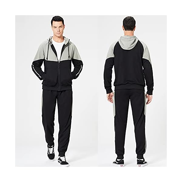 Men’s Hooded Athletic Tracksuit Sweatsuit Long Sleeve Full-Zip Jogging Sweatpants 2 Piece Patchwork Sportsuits