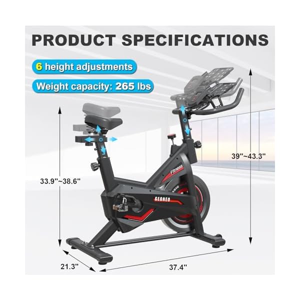🚴【PERSONALIZED EXERCISE BIKE】Our indoor cycling bike comes with fully adjustable handlebars and built in arm and elbow rests.At the same time equipped with adjustable height seat. (seat adjustable height 33.9-38.6in, handlebars adjustable height 39-43.3in). The seats are ergonomically designed,and can easily moves forward/back and up/down.