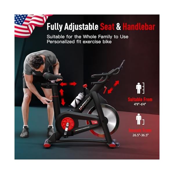 【Fully Adjustable Seat & Handlebar】13-level adjustable comfortable seat and 8-level adjustable handlebars to accommodate all family members of different heights (Suitable inseam: Min 26.5″ to Max 36.5″). With the HARISON Mute System, you can freely adjust the resistance according to your needs to meet different exercise programs.