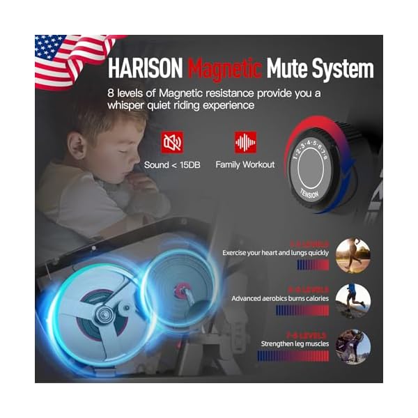 US MUTE MAGNETIC RESISTANCE : HR-B6 workout bike comes with 8 gears magnetic resistance, provides a near-silent smooth ride. You can easily control the intensity of your workout with the convenient tension control.