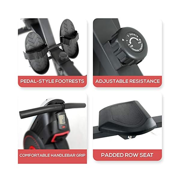 8 RESISTANCE LEVEL: This compact gym exercise rower style workout equipment rowing machine features 8 levels of tension resistance so you can customize the intensity of your workout. Perfect for weight loss, cardio fitness, endurance/stamina building