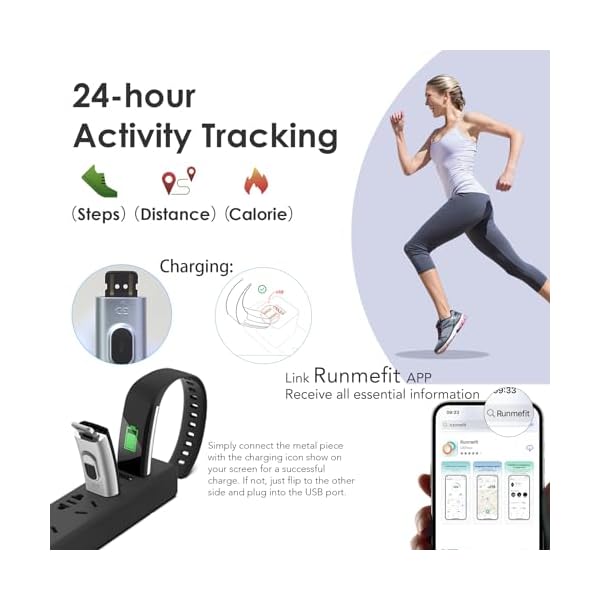 【Real-time Health Monotoring&Women’s Health】- The fitness tracker monitor your heart rate,blood pressure and blood oxygen,which help you know body condition.It also can monitor your sleep duration and sleep quality.sleep datas only can see in App. Download APP”Runmefit” in your smartphone ,after pairing successfully and the period record will be show on Runmefit App. More issue for pairing with smart watch fitness tracker,pls see below attached”troubleshoot guide” or video on the top left side .(Note:The blood pressure and blood oxygen values monitored by this watch are for reference only and cannot be used for medical purposes)