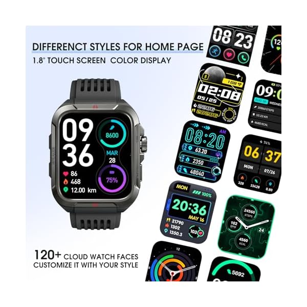 ⌚【TOUCH SCREEN HD COLOR DISPLAY】TFT-LCD 1.8-inch large touch screen provides excellent high-definition color image quality. Switch to 120+ different screen styles with one touch, supporting upload custom pictures. Flip your wrist to automatically wake up the screen, 5 levels of the screen brightness can be set.