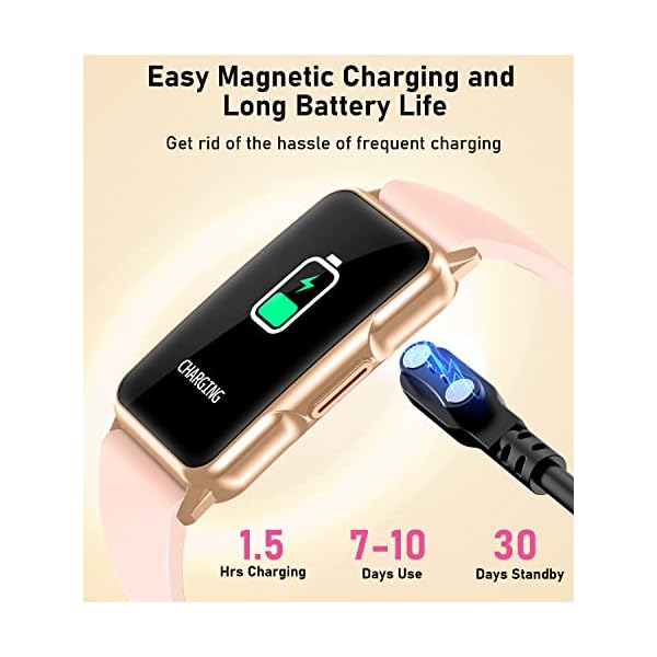 【Ultra Long Battery Life & IPX8 Waterproof】Simply charge the smart watches for men and women with a magnetic USB cable. It takes 1.5-2 hours to full charge the fitness watch. Each full charge supports 6-7 days heavy use or 10 days daily use. Its standby time is up to 30 days.This smart fitness watch is IPX8 waterproof, which is safe for washing bands,taking a shower, workout in the rain and swimming.