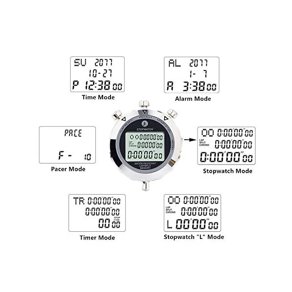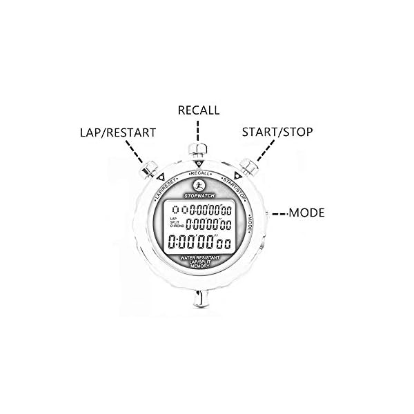 🌻 Stopwatch function :100 Lap memory and 0.01 second accuracy, multi-functional stopwatch, three row display, two sets of record memory (Normal timing–Stopwatch mode and cumulative timing–Stopwatch L mode) . Looking up records up and down, read the Average(AVE) time is available .