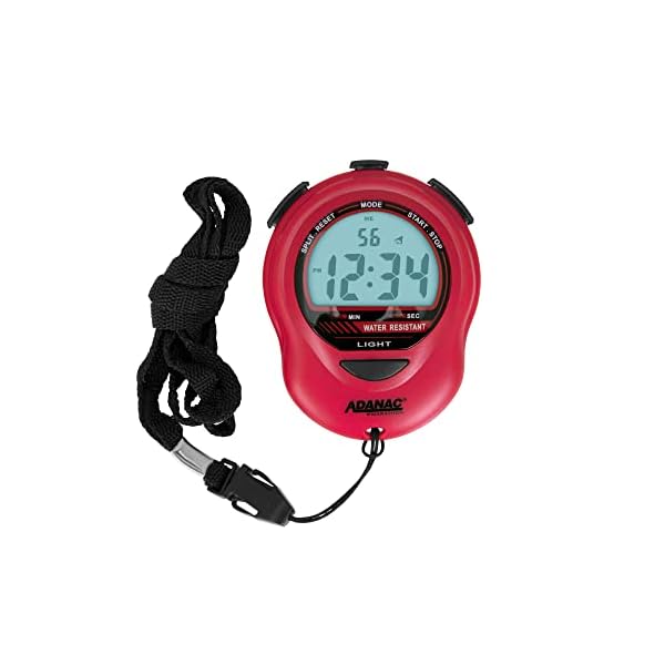 Marathon ADANAC Digital Glow Stopwatch Timer has an super-glow back-light display. Jumbo display and conveniently located grip buttons is user-friendly Includes an alarm, a glow that is easy on the eyes and large digits for clear visibility Digital stop watch displays minutes, seconds and 1/100th seconds Time single and split events Time-out mode timing, separate start-stop and reset buttons allowing for easy navigation Split-mode timing to freeze the split-time display while total timing continues Water, dust and shock resistant LCD screen will dim when battery needs replacing. One (1) CR2032 battery included Includes 46″ lanyard (neckband) for your convenience and assurance without having the hassle or awkwardness of grabbing your phone Lightweight causing no strains around the neck when worn and fits right in the palm of your hand making it easy to carry Great for teachers, students, coaches, athletes, referees, adults, kids to use in classrooms and at various sporting events and to track and measure the amount of time that elapses.