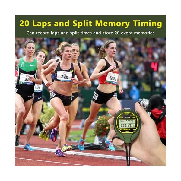 20 Laps/Split Stopwatch – Stopwatch timer can records laps and split times and stores 20 event memories. Can measure up to 9 hours, 59 minutes and 59 seconds in units of one hundredth (1/100) of a second.