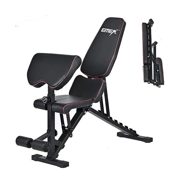 COMFORTABLE & ERGONOMIC DESIGN : Comfortable high-density foam padding and seat secures body firmly and reducing muscle fatigue during workout. This weight bench features a soft leather which is filled with dense foam padding so it is comfortable to do multiple exercises.