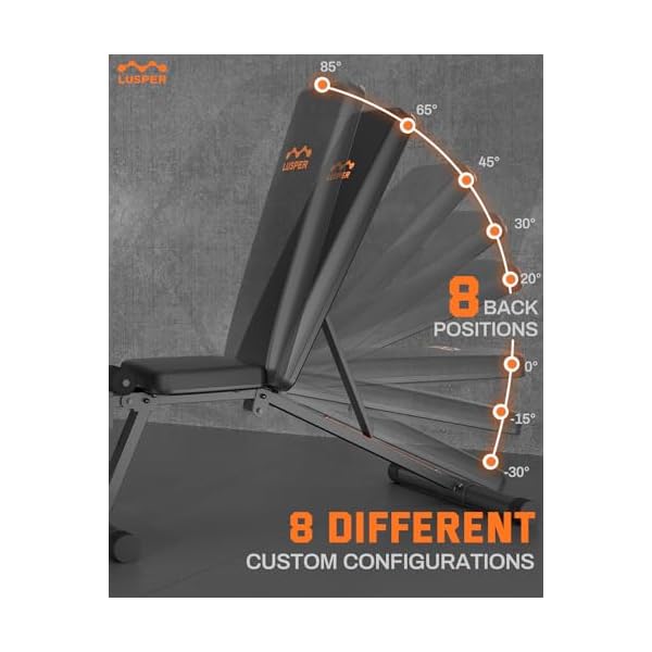 【TRUE 600lb Capacity for Improved Security】 With upgraded steel and the most rigorous load tests, the Lusper Adjustable Weight Bench proudly holds up to 600 lbs to support your weight and a fair amount of dynamic forces. The professionally designed, extra solid triangle structure keeps the bench incredibly stable so that you can lift with full confidence!