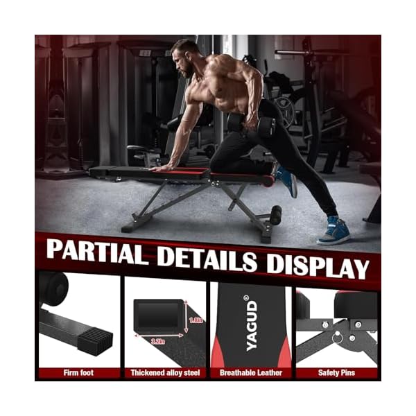 ADJUSTABLE WEIGHT BENCH: Yagud adjustable bench offers 6 back adjustments, 4 seat adjustments, and 3-foot adjustments, So this weight bench can easily switch between incline and flat positions.