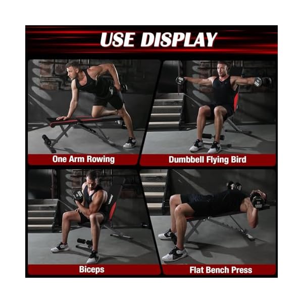 880LB WEIGHT CAPACITY: Our Adjustable workout bench features 1.2MM thick alloy steel, with a max weight capacity of 880 lbs, and a solid triangle structure professionally designed to ensure your safety while training.