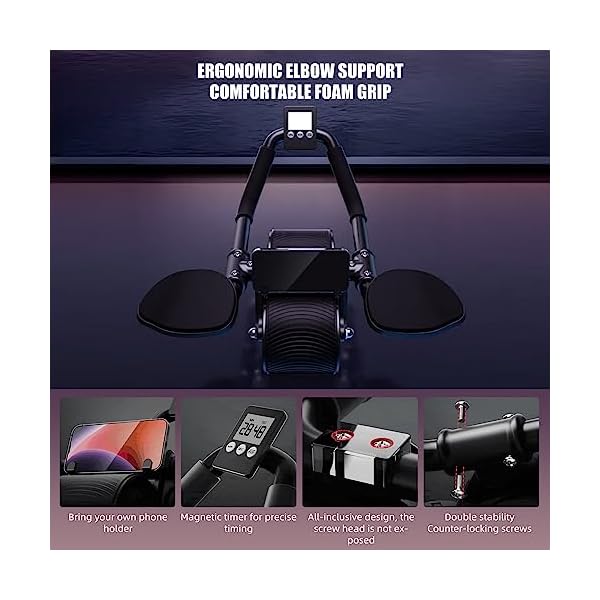 【Ab Roller with Elbow Support】: Upgraded ab roller with elbow support design provides enhanced stability during workouts, reducing lateral movement and preventing arm compensation; This allows for more precise and effective ab muscle activation, so you can focus on training your abs and core muscles without worrying about arm fatigue or injury