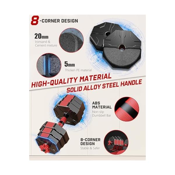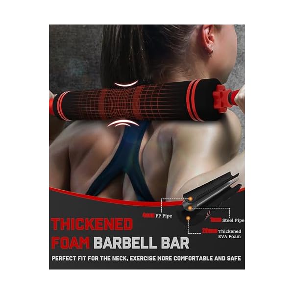 【Ergonomic Comfort & Secure Grip】With an ergonomic, foam-padded bar and upgraded safety nuts, our adjustable dumbbell set is designed for a non-slip, secure grip and comfort that adapts to the natural contours of your hands and neck.