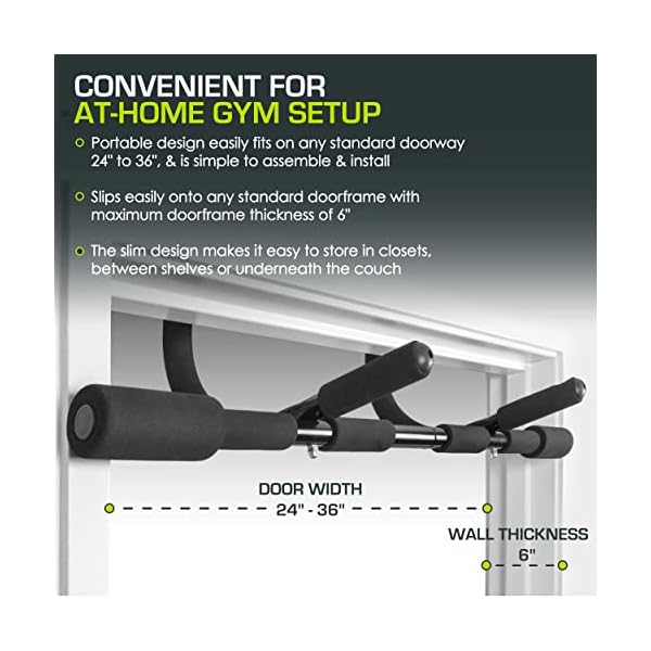 EASY TO USE – Portable design easily fits on any standard doorway 24″ to 32″, and is simple to assemble and install