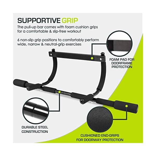 COMFORTABLE GRIP – 8 non-slip foam grips to comfortably perform wide, narrow and neutral-grip exercises