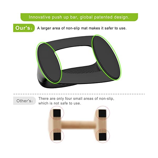 šÆćStable Non-Slip BasećThe base of our push up bars is designed with anti-skid pads that increase friction and prevent sliding on any floor surface. You can focus on your form and technique without worrying about injuries or accidents.