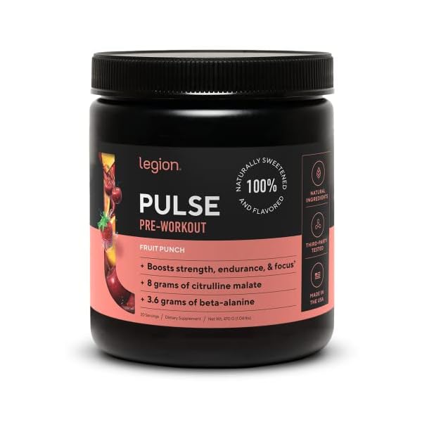 Energize Your Workout Naturally: LEGION Pulse Pre Workout Supplement provides a 100% natural energy boost that helps keep you focused & strong throughout your workout; It contains large & effective doses of science-backed ingredients, including those found in many nitric oxide supplements: L-theanine, Citrulline Malate, Betaine, Beta Alanine & Alpha GPC