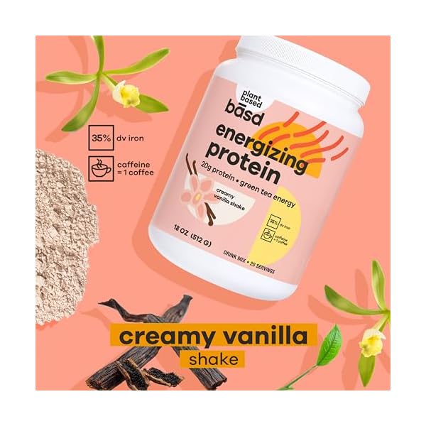 ENERGIZING PROTEIN POWDER IN A CREAMY VANILLA SHAKE FLAVOR: A daily pick-me-up from natural energy and plant-powered proteins. Enjoy 20g protein, 100mg caffeine, 100 calories, and 0g sugar per serving.