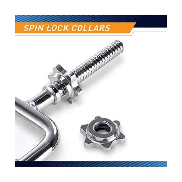 SPIN LOCK COLLARS – Forget about unstable plates when training. This triceps bar comes with two spin locks that attach firmly onto its ends to secure the weights and prevent them from moving when you perform exercises.