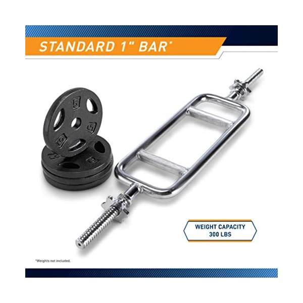 COMPATIBLE WITH ONE-INCH PLATES – Made to be compatible with standard 1-inch weight plates without breaking or collapsing, this triceps bar secures weight plates with its threaded posts and spin lock collars – giving you a hassle-free workout experience.