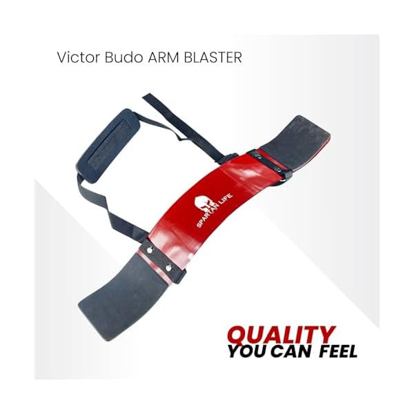 【Strong and Sleek】: The biceps bomber sports with a classy Spartan Arm Blaster logo that complements any workout ensemble. Black rivets secure each side of the neck strap to the frame