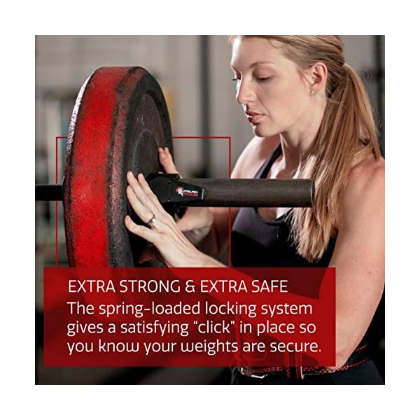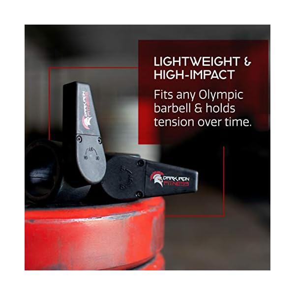 Dark Iron Fitness Barbell Clamps 2 Inch – 1 Pair of Olympic Size Weight Barbell Collars, Professional Weightlifting Plate Clips with Quick Release Spring Lock to Hold Weights on Bars – Black