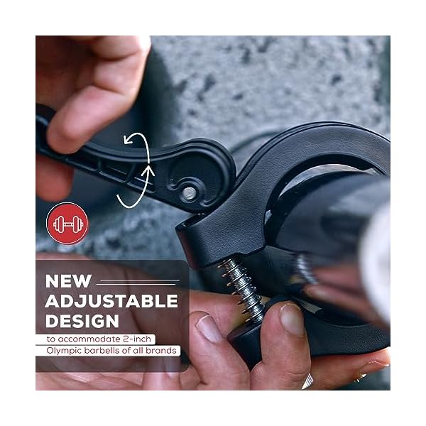 NEW ADJUSTABLE DESIGN TO FIT EVERY OLYMPIC BAR – Say goodbye to the hassle of finding the right collar for your bar. Our adjustable collar guarantees a secure fit on any brand of 2-inch Olympic barbell, ensuring a snug hold without any compromise in performance.