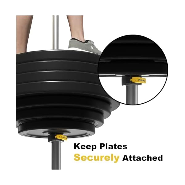 【Safety & Stability】: The barbell collars contact surface spacer is made of TPR high quality soft rubberized lining material, which has more friction and stronger grip, making the weight plate more solid, not only helps prevent slipping, but also protects the barbell.