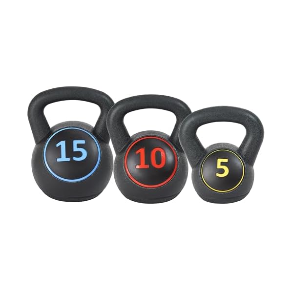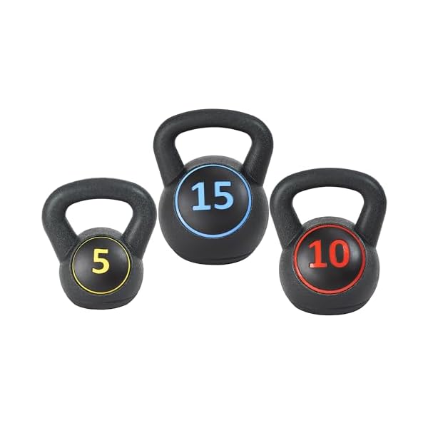 Signature Fitness ​Wide Grip 3-Piece Kettlebell Exercise Fitness Weight Set, Include 5 lbs, 10 lbs, ​15 lbs​ and 20 lbs, Set of 3 or Set of 4